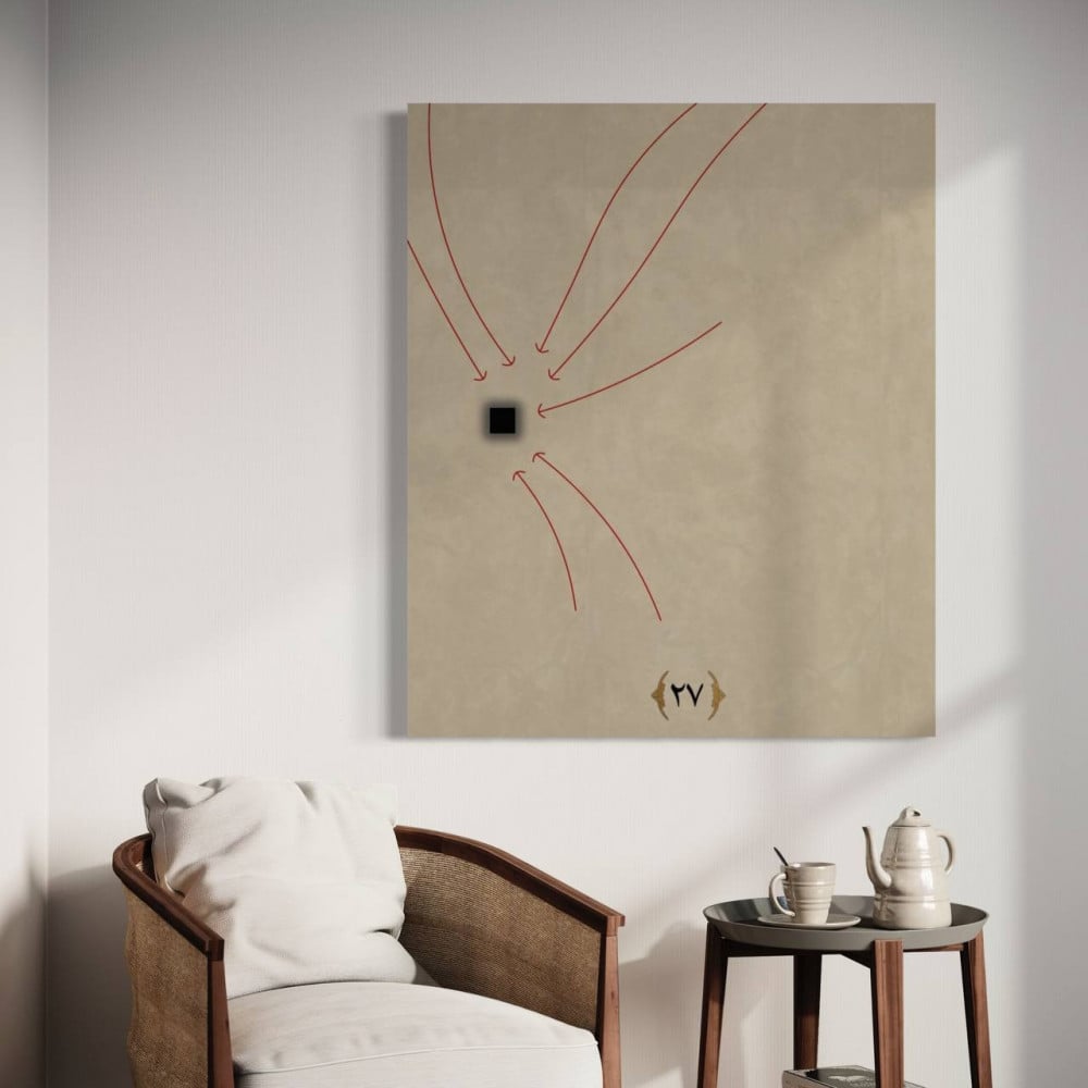معلقة الحج تمثل إبداعًا فنيًا فريدًا يجسد معاني الروحانية والتفاني في طاعة الله. معلقة مطبوعة تمثل لوحة فنية معاصرة تعكس جزءًا من رحلة الحج الروحية عبر استخدام رموز بصرية بسيطة ولكنها عميقة في معانيها. اللون البيج الناعم والخطوط الحمراء الرفيعة التي تشير إلى الكعبة المشرفة تضفي على العمل طابعًا من الهدوء والتأمل.