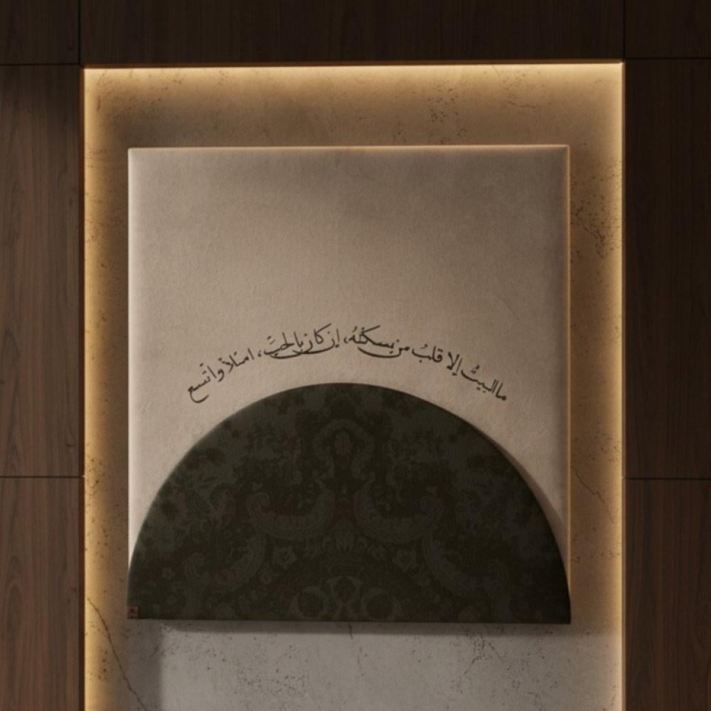 تأتي الجدارية بمقاس 100×100 سم، وتصميم أنيق بخط عربي مميز وألوان هادئة مثل البيج والزيتي، ما يجعلها خيارًا مثاليًا للمجالس، غرف المعيشة، مداخل الفلل، أو حتى الفنادق الراقية.