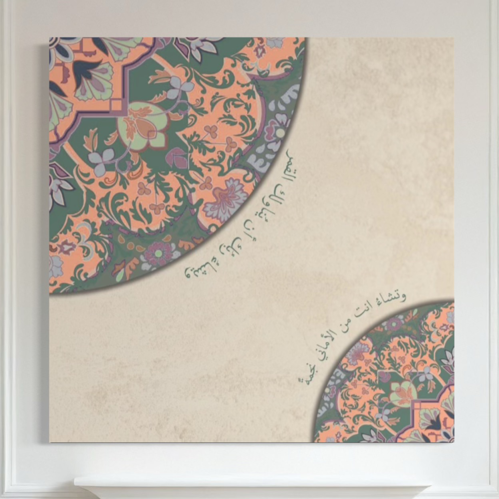 جدارية مخمل فاخرة | "وتشاء أنت من الأماني نجمة" | ألوان هادئة ولمسة تركواز| 100*100سم