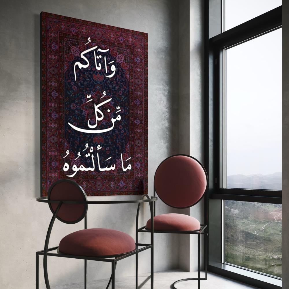 فيض السؤال | جدارية مخمل فاخرة بآية قرآنية | 100*150سم