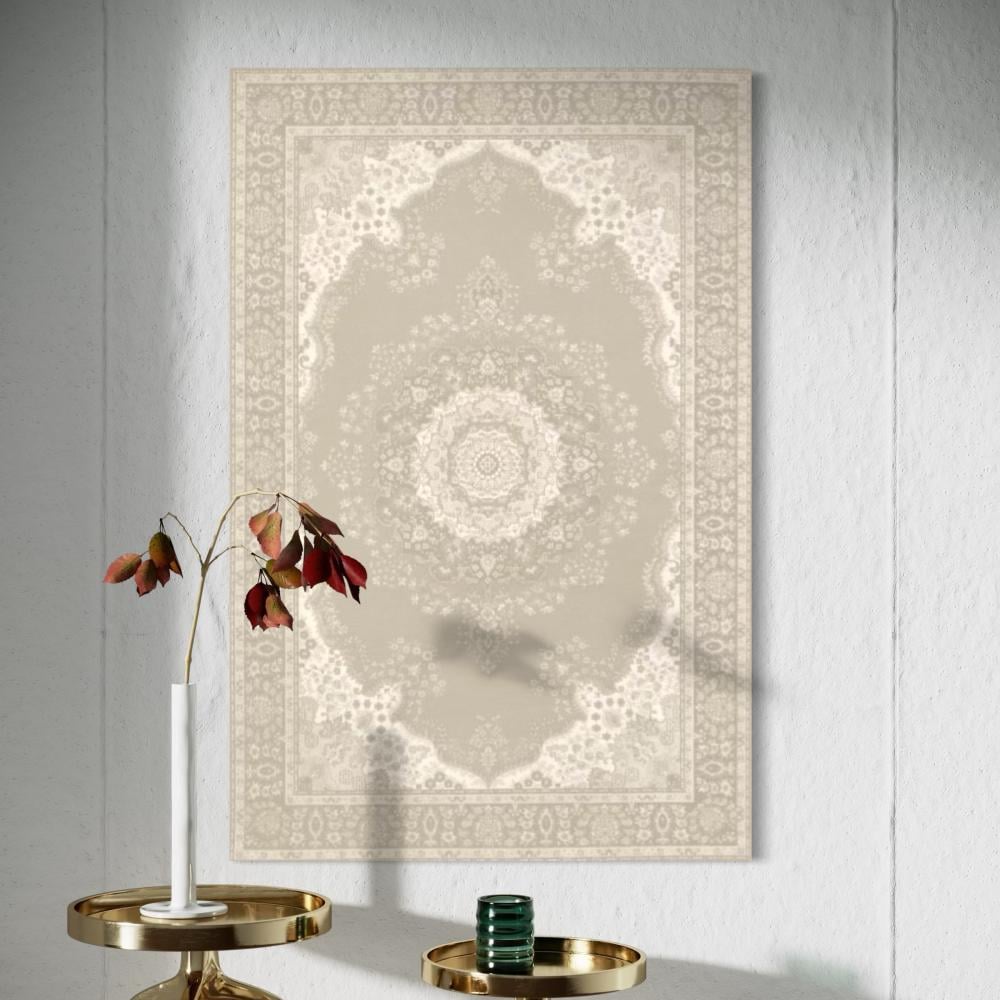 يقدّم هذا التصميم الهادئ لمسة فنية راقية تعتمد على خامات عالية وجودة طباعة دقيقة، مما يجعله خيارًا مثاليًا لمحبي لوحات سجاد ذات الطابع العصري الدافئ. ينسجم اللون البيج الفاخر مع مختلف الديكورات، ليحوّل الجدار إلى نقطة جذب أنيقة ومتناغمة.
