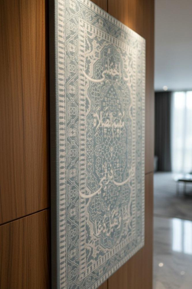 تُعد هذه لوحة دينية اسلامية قطعة ديكور إيمانية راقية تجمع بين جمال المعنى وأناقة التنفيذ، حيث يبرز الخط العربي بأسلوب متوازن فوق خلفية مخملية فاخرة، لتمنح الجدار حضورًا روحانيًا ينسجم مع مختلف أنماط الديكور الإسلامي ويُعد إضافة مميزة ضمن اللوحات الجدارية الراقية.