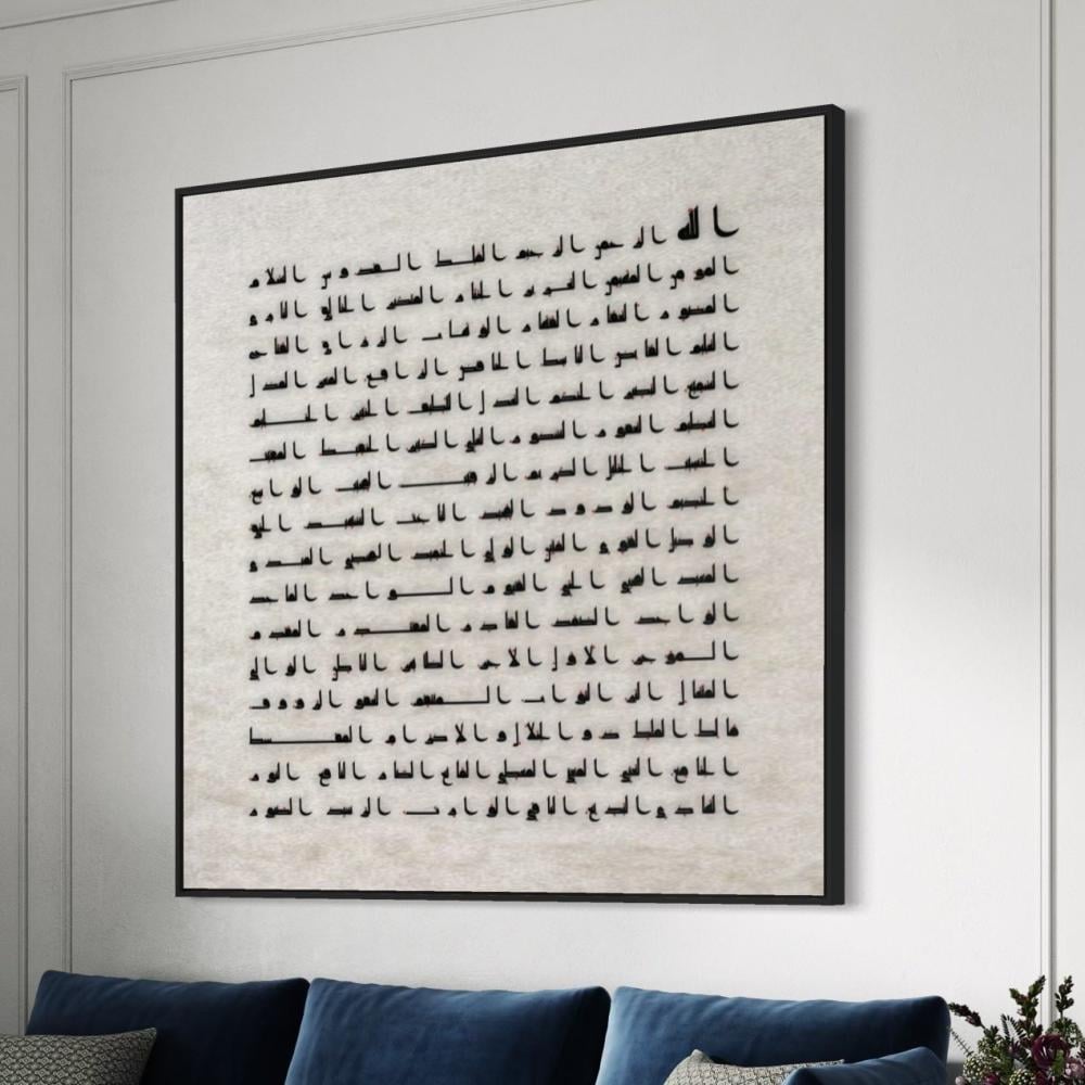 جدارية أسماء الله الحسنى | ١٢٠×١٢٠ سم | مخمل فاخر بإطار خشبي أسود