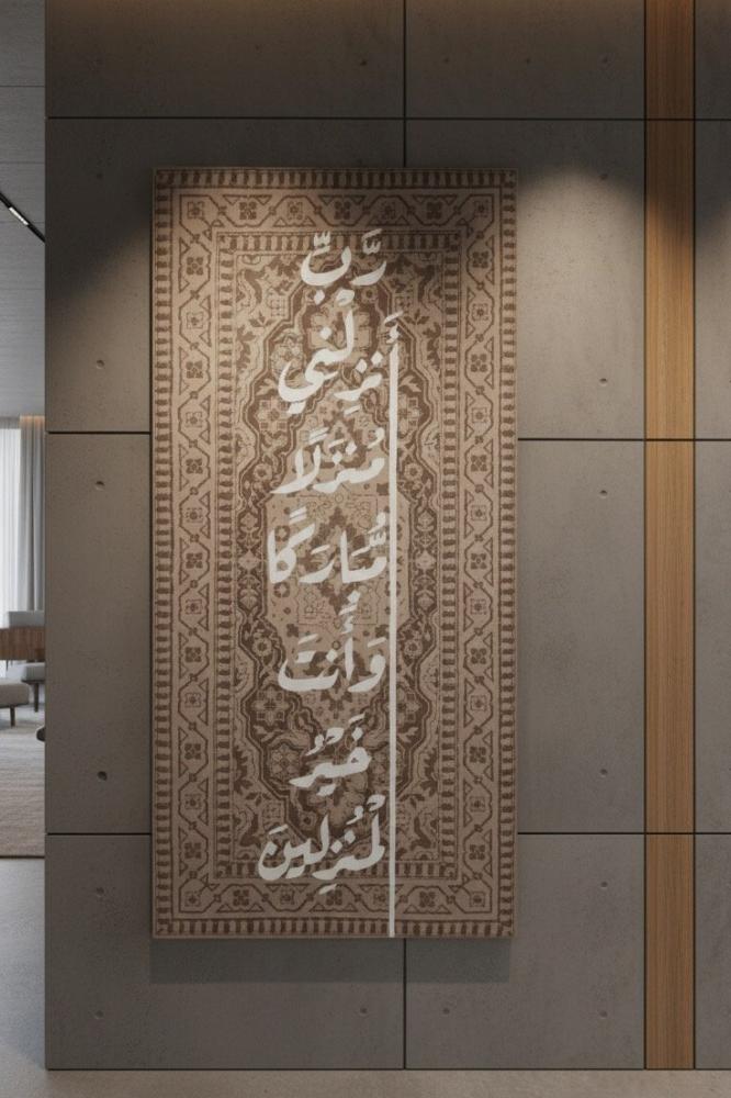 لوحة معلقة فاخرة بمقاس 200 * 100 سم، تُعد إضافة مميزة لأي منزل أو مكتب. تم تصميم لوحة رب انزلني منزلا مباركا بعناية لتجمع بين الجمال الفني والطابع الروحاني، حيث تبرز الدعاء المكتوب بشكل أنيق يضفي جواً من الطمأنينة والسكينة على المكان. اللوحة مطبوعة على قماش عالي الجودة، مما يضمن بقاء الألوان والتفاصيل واضحة وجميلة لسنوات طويلة.