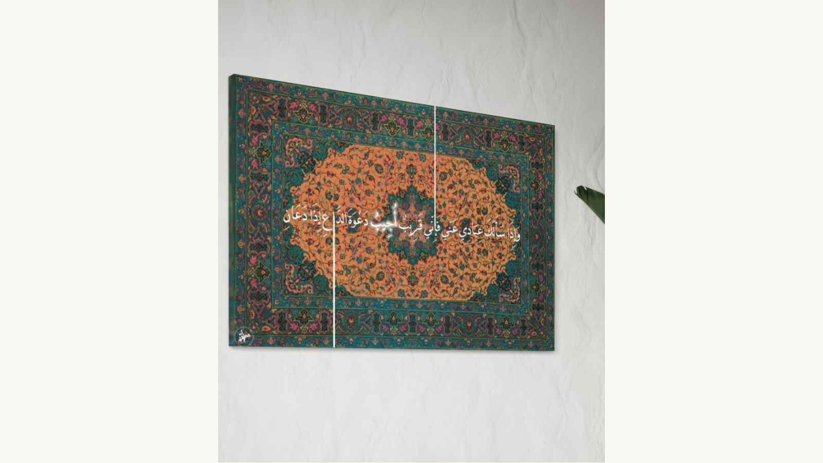 تكون من آيات ملهمة ومؤثرة، وفي معلّقة تُطبع على خامات فاخرة مثل المخمل لدوام يتوارثه الأجيال. مثل جدارية آية "وإذا سألك عبادي عني فإني قريب" التي تجمع بين حداثة التصميم وروحانية الآية الكريمة
