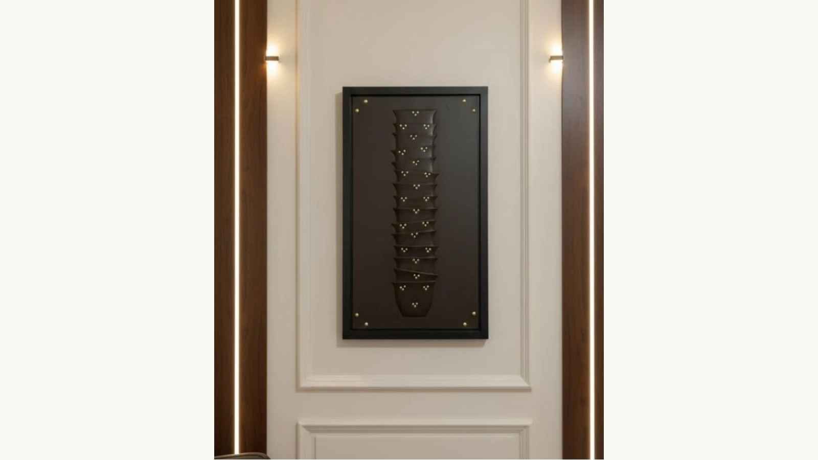 تعتمد على الزخارف الكلاسيكية المستوحاة من الفن الإسلامي. هذا الأسلوب يضفي فخامة هادئة وأصالة واضحة على المجالس والغرف التي تعلق فيها هذه اللوحة.